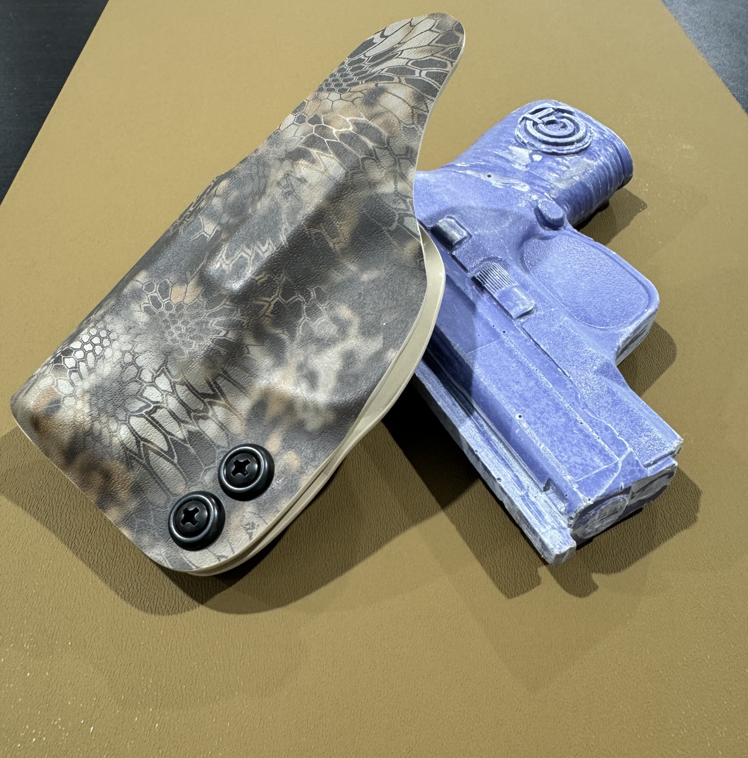 Now we know that all folks shop with us because they like style, color and flash at times. With the IWB selections we still offer over 100 different color options for your holster including Multicam, Kryptek, Hexcam, Carbon Fiber and more. Since the idea is to not be seen, why not have fun with your choices and even think about a one off custom printed holster also. All of our Kydex options are either .08” or .093” thick in order to have a super reliable holster.