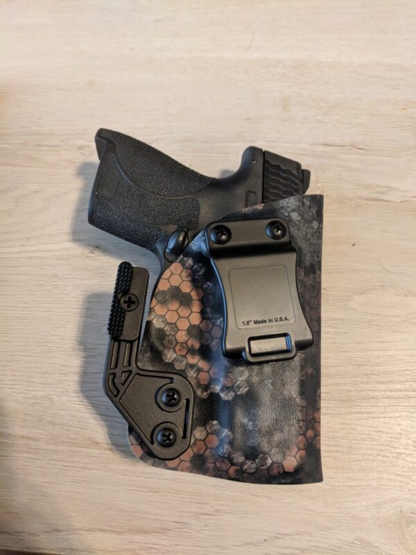 Now we know that all folks shop with us because they like style, color and flash at times. With the IWB selections we still offer over 100 different color options for your holster including Supercam, Kryptek, Hexcam, Carbon Fiber and more. Since the idea is to not be seen, why not have fun with your choices and even think about a one off custom printed holster also.