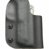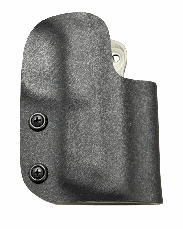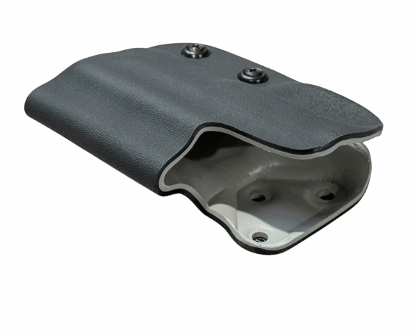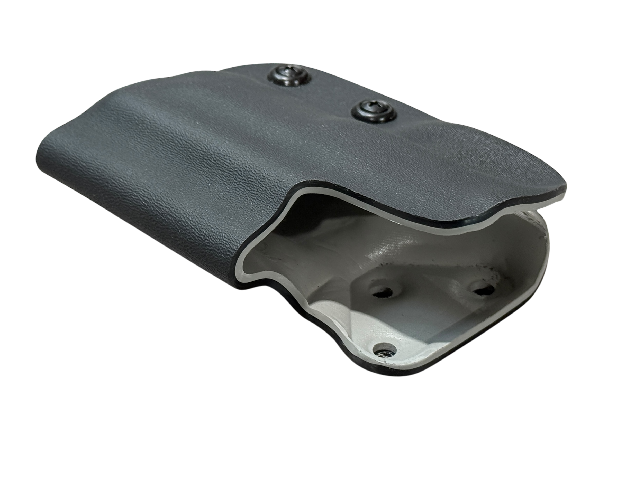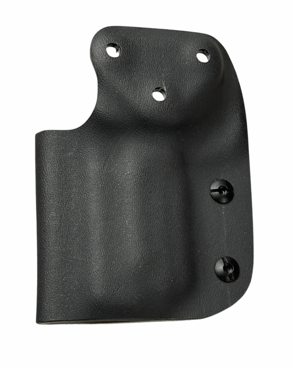 It is available only in the tried and true double layer configuration. This features two layers of .08 thick Kydex to add a great deal of structure to your holster. The extra rigidity supports the low cut that we use, as well as reduces the flex and bounce that happens when you cut this much out of a single layer of Kydex. In addition to the stability, it gives you the ability to further add to the custom look of your rig.