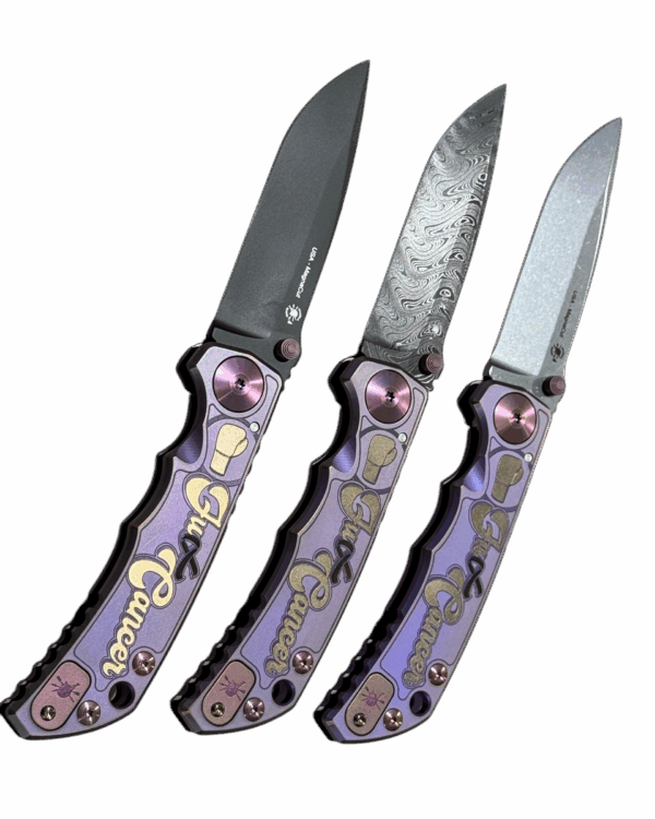 These Fuck Cancer knives have been a passion for Bob and the team at RHT. In January 2020 Bob was diagnosed with Colon Cancer and spent 10 days in the hospital with surgery to remove the tumor, and then did 8 rounds of Chemo after that. This is where the Blue comes from. In February 2022 he then lost his mother to cancer, and again realized how much of an impact that cancer can play in families.