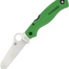 Also available in an aggressive SpyderEdge™ configuration, its blade is full-flat ground for low-friction cutting performance and is supported by a sturdy back lock mechanism. The lightweight handle is injection-molded in the distinctive green color of the LC200N series and is home to a reversible pocket clip that provides ambidextrous tip-up carry.