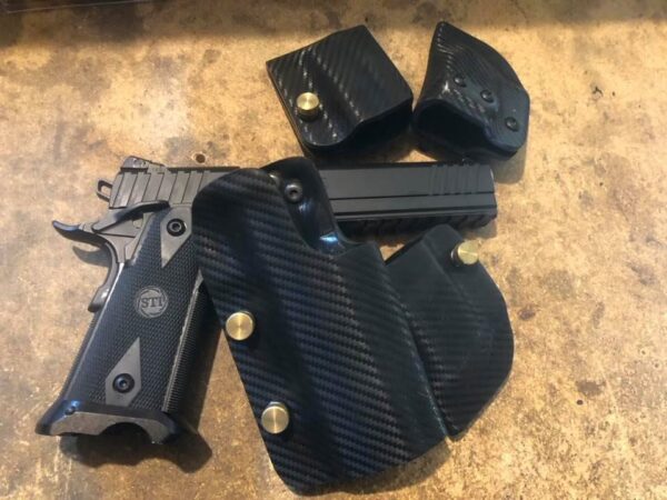 This is the top of the line double layer Red Hill Tactical STI EDGE holster as used by many shooters around the country. The design stemmed from several top tier shooters sitting around in 2014 with a low cut single layer holster. We were not happy with the movement and flex. One of them said “Hey Bob, add a second layer”. The very next day the RHT double layer holster was born and always proudly Made in the USA. Since then this has been the leading holster in USPSA nationals data for multiple divisions including carry optics and production over many years.