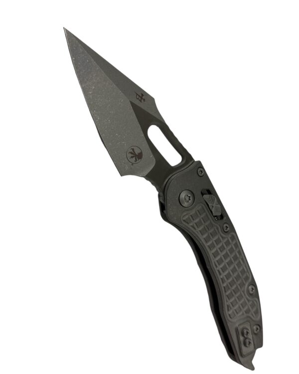 The Microtech Stitch® is a production version of the custom knife collaboration between Marfione Custom Knives® and Borka Blades. This model features a substantial choil and thumb ramp, spear point style blade and a knurled alloy handle with a black finish. Most of our Stitch® Auto knives come fitted with bead blasted hardware (unless DLC or Tactical) and a secure right hand, tip-up carry pocket clip.