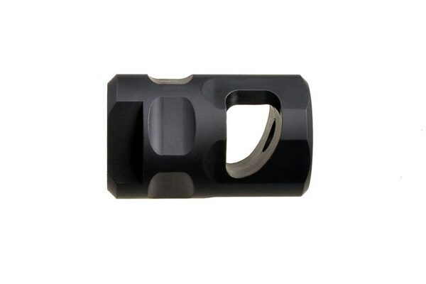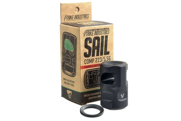 The SI Sail Comp is a high efficiency single chamber brake. The Sail comp derives its name from the unique baffle shape that redirects muzzle gasses out and upward providing recoil mitigation and muzzle rise control. The Sail Comp packs the performance of larger, heavier devices into a compact, lightweight package.