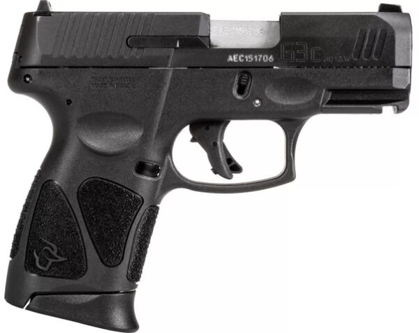The Taurus® G3 Series continues the proven polymer-frame profile now in a hybrid configuration with a full size grip and generous stippling patches across the grip for maximum control and retention in any shooting condition but a compact size slide to allow better comfort and concealment. The frame has an integrated Picatinny rail. Slide release lever is optimally positioned above the thumb for easy manipulation. – A refined element of the G3 is the 6-lb. trigger designed with a smooth take-up and a surprisingly crisp clean break exceeding that of typical striker-fired pistol trigger performance. A short reset promotes quick controlled follow-up shots. – The Basics – Caliber 40 S&W – Capacity 10 Rounds – Front Sight Fixed – Rear Sight Drift Adjustable – Magazines Included 3 – Action Type SA w/Restrike – Special Features Accessory Rail Re-Strike Capability – Tech Specs – Frame Size Compact – Barrel Length 3.20 In. – Overall Length 6.30 In. – Overall Height 5.10 In. – Overall Width 1.20 In. – Overall Weight 22.00 Oz. (Unloaded) – Twist Rate 1:16 -IN RH twist – Materials – Frame Material Polymer – Frame Finish Black – Slide Material Alloy Steel – Slide Finish Tenifer Matte Black – Barrel Material Stainless Steel – Barrel Finish Matte Stainless – Safety Loaded Chamber Indicator Manual Safety Striker Block Trigger Safety