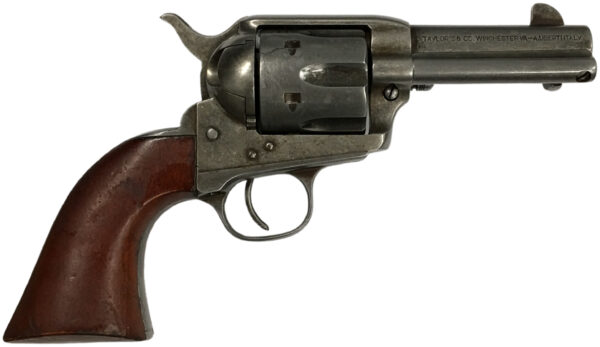 The Cattleman Antique finish is applied to the entire revolver at the factory and could fool anyone for an original piece when done. The antique finish models are built on a new model forged frame with the durable aged finish applied to all parts (cared for like blued steel). Also during the antiquing process the grips are aged to look authentic to match the rest of the revolver. – Barrel Length: 3.5 – Caliber: .45LC – Capacity: 6 – Weight: 2.40 lbs – Finish: Antique Finish – Grip/Stock: Walnut – Sights: Fixed Front Blade Rear Frame Notch – Overall Length: 9.10