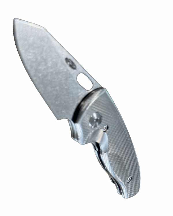 Many of our customers love to flick their knives open (and close and open an close and open). Our Nerd takes lots of practice to become an expert! Kevin Wells (FB Group expert and YouTuber) suggested we turn our machined oval into a cutout. Well, here she comes. The placement of the oval has changed for ease of opening – chamfered edges of course.