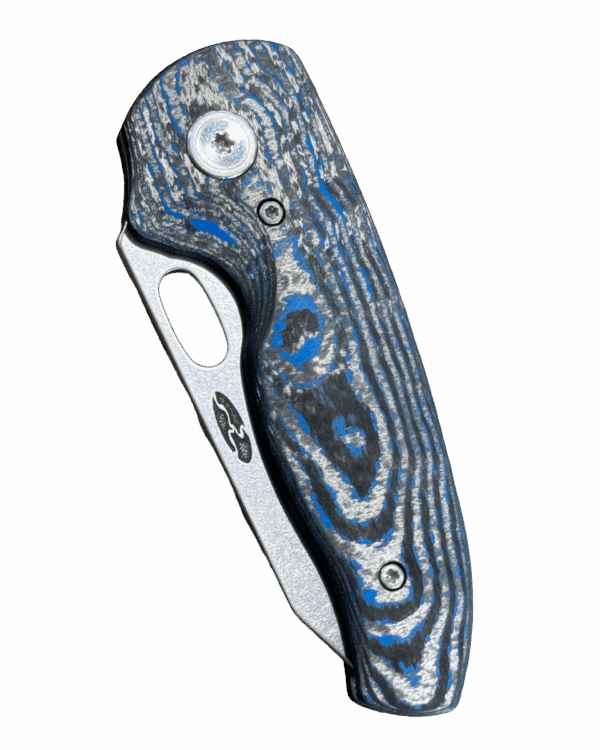 Many of our customers love to flick their knives open (and close and open an close and open). Our Nerd takes lots of practice to become an expert! Kevin Wells (FB Group expert and YouTuber) suggested we turn our machined oval into a cutout. Well, here she comes. The placement of the oval has changed for ease of opening – chamfered edges of course.