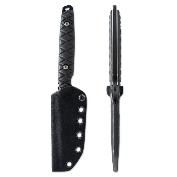 This limited edition Kingpin is available in two striking colorways, The Don and Medellin, with each design paying homage to the boldness of its name. You can choose between a durable Paper Micarta handle or a robust G10 handle, both of which are not only exceptionally tough but also provide a comfortable grip for all-day carrying. Each Kingpin includes a hand-pressed Kydex sheath that fits snugly against the blade, ensuring secure retention and allowing for swift deployment when needed. With its tactical features, premium materials, and attention to detail, the Toor Knives Kingpin stands as a versatile companion in any setting, ready to meet the demands of any mission with style and reliability.