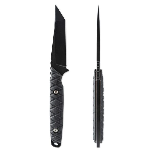 Introducing the Toor Knives Kingpin, a sleek and tactical tanto blade that merges heritage craftsmanship with modern functionality. Originally released in 2020, the Kingpin was designed as a slim fixed blade specifically for snipers and reconnaissance operations, allowing it to lay extremely flat when mounted to your gear for easy concealment and access. The tanto blade design is distinguished by its strong tip and straight edge, making it exceptionally effective for piercing applications and providing remarkable control during detailed cutting tasks. Constructed from CPM 3V steel, the Kingpin boasts outstanding toughness and edge retention, ensuring that it holds up under rigorous use in various environments while maintaining a sharp edge for reliable performance.