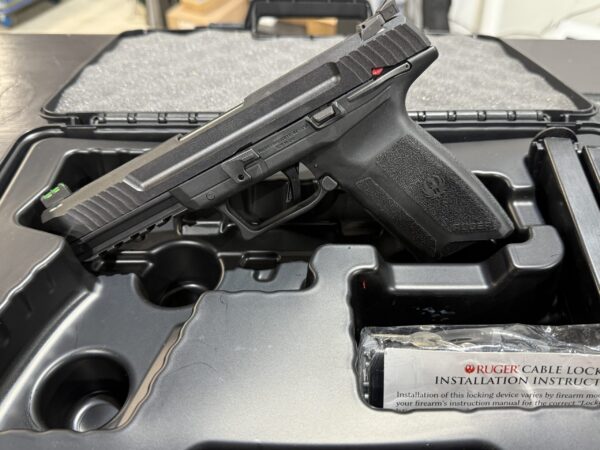 The Ruger 57 utilizes Ruger’s safe, reliable and proven Secure Action fire-control system that combines a protected internal hammer with a bladed-safety trigger. The trigger has a short, smooth pull, clean break and positive reset. Impressive ergonomics include an easy trigger reach, 1911-style ambidextrous manual safety, robust slide release and reversible magazine release latch. The alloy steel barrel features a black nitride treatment for wear resistance.
