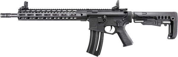 Caliber: 22LR – Finish: Matte Black – Action: Semi-Automatic – Stock: Black Synthetic 5x Adjustable – Sight: Flip-Up Back-Up Sights – Barrel Length: 16.1 – Overall Length: 35.83 – Weight: 5.62 lbs – Capacity: 20+1 – # of Mags: 1 – Safety: Ambidextrous – Receiver: AluminumMatte Black 13 M-LOK Handguard – Muzzle: Removable Flash Hider