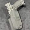 It is available only in the tried and true double layer configuration. This features two layers of .08 thick Kydex to add a great deal of structure to your holster. The extra rigidity supports the low cut that we use, as well as reduces the flex and bounce that happens when you cut this much out of a single layer of Kydex. In addition to the stability, it gives you the ability to further add to the custom look of your rig. We feature everything from solid colors, carbon fiber look, and many custom camouflage patterns including Kyrptek, Supercam, Hexcam and more.