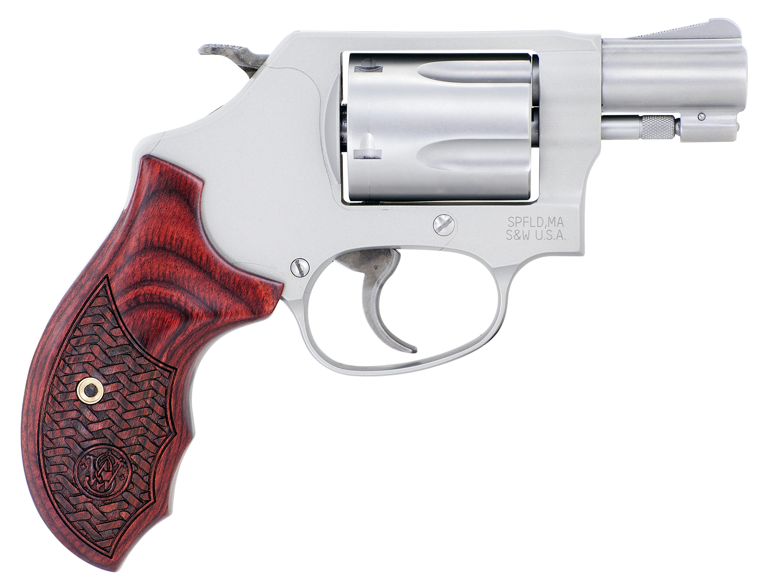 SW 442 38SPL 1.875 WOOD GRIPS SCROLL ENGRAVED